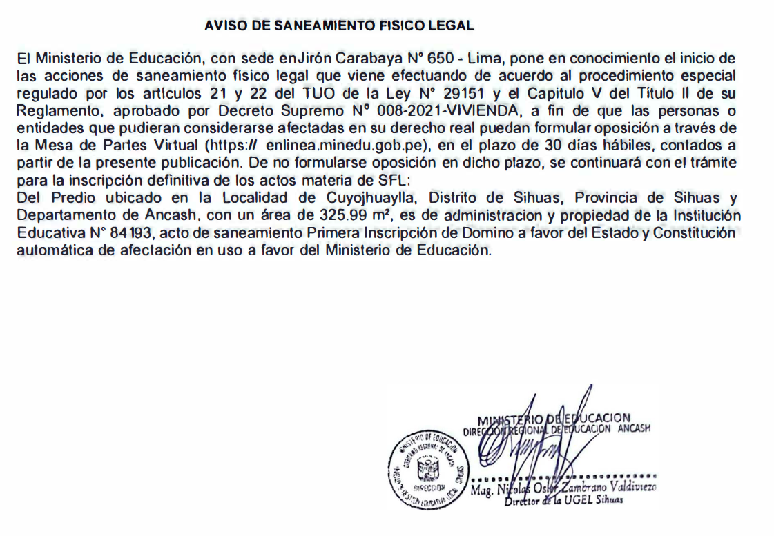 AVISO DE SANEAMIENTO FÍSICO LEGAL